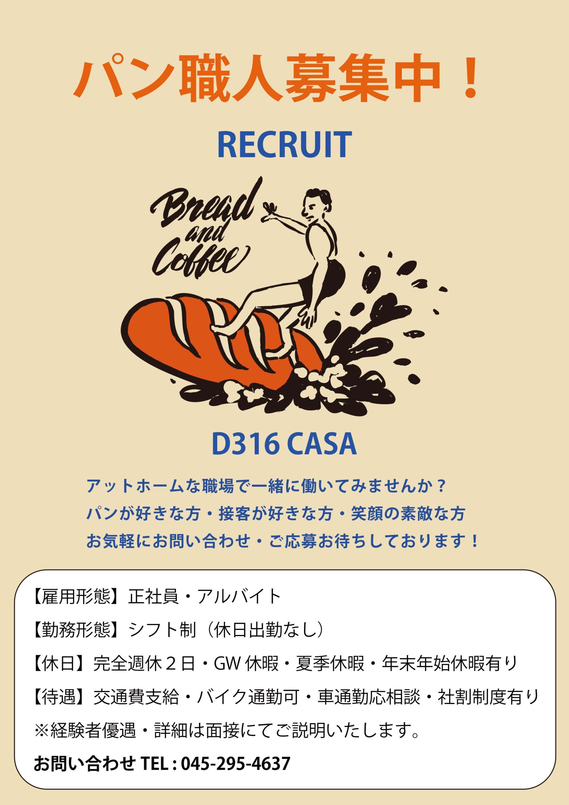 D316では、ただいまパン職人を募集中です。
